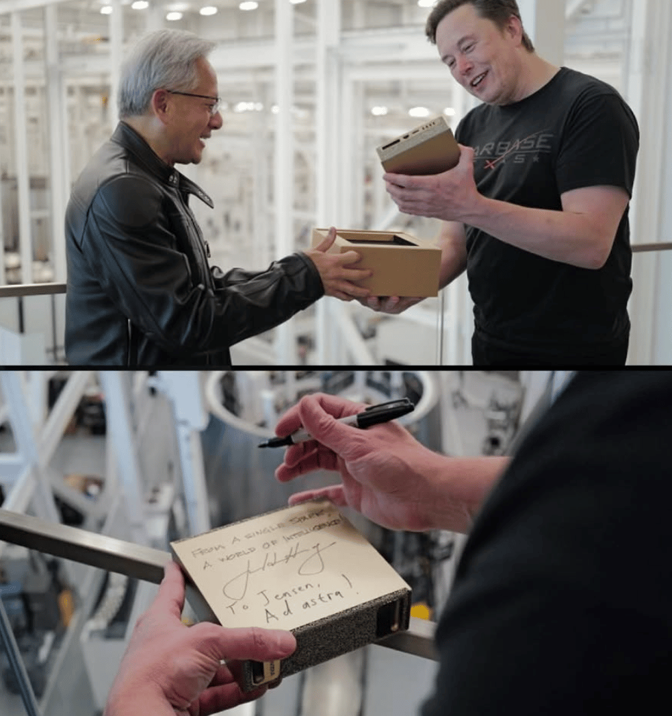 Jensen Huang just handed Elon Musk a 2.6-pound box that contains more computing power than a rack-mounted data center from nine years ago. Hours before SpaceX's Starship Flight 11 launch, NVIDIA's CEO personally delivered the DGX Spark—and the symbolism is not subtle.